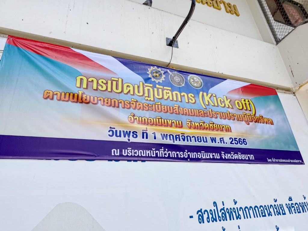 วันนี้ 1 พ.ย.66 เวลา 10.00 น. เป็นต้นไป พ.ต.อ.ชาติภัทร พิเนตรบูรณะ ผกก.สภ.เนินขาม พร้อมด้วยเจ้าหน้าที่ตำรวจ สภ.เนินขาม ร่วมเปิดปฎิบัติการ(kick off) โดยมี นางสาวสิริญรัศมิ์ นุตตะรังค์ นายอำเภอเนินขาม ได้เป็นประธานเปิดปฎิบัติการ(Kick off) ตามนโยบายจัดระเบียบสังคมและปราบปรามผู้มีอิทธิพล อำเภอเนินขาม จังหวัดชัยนาท ณ บริเวณหน้าที่ว่าการอำเภอเนินขาม ร่วมกับหัวหน้าส่วนราชการ,นายกเทศมนตรีตำบลเนินขาม,นายกองค์การบริหารส่วนตำบลสุขเดือนห้า,นายกองค์การบริหารส่วนตำบลกะบกเตี้ย โดยมีการดำเนินการดังนี้ 1. ปล่อยแถวชุดปฏิบัติการพิเศษฝ่ายปกครองอำเภอเนินขาม ร่วมกับหัวหน้าส่วนราชการอำเภอเนินขาม,เจ้าหน้าที่ตำรวจสถานีตำรวจภูธรเนินขาม, สมาชิก อส.อ.เนินขาม ที่ 8 2.ร่วมกันออกตรวจโรงแรมในพื้นที่อำเภอเนินขาม จำนวน 3 แห่ง ผลการตรวจ:ไม่พบการกระทำความผิด เกี่ยวกับยาเสพติด การค้ามนุษย์ การครอบครองและพกพาอาวุธปืน แรงงานผิดกฎหมาย และการพนัน