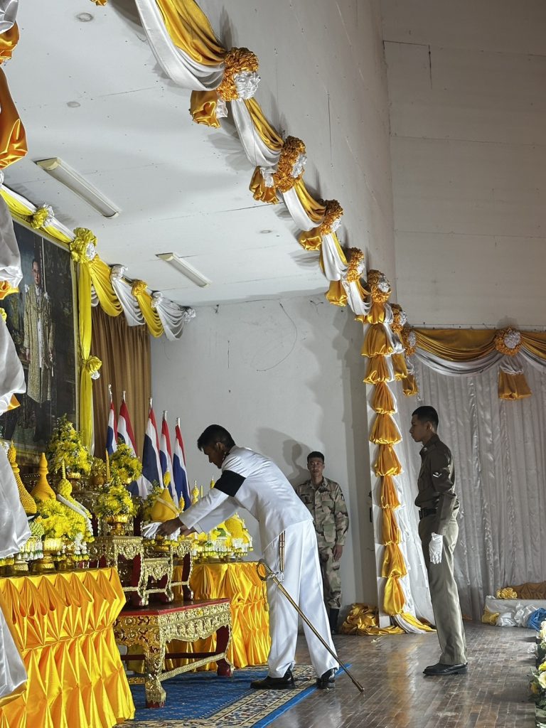 กิจกรรมวันชาติและวันพ่อแห่งชาติ 5 ธันวาคม 2568 5 ธันวาคม 2025 โดย admin.nk / ข่าวภารกิจผู้บังคับบัญชา ในวันที่ 5 ธันวาคม 2568 เวลา 07:00 น. พ.ต.อ.ชาติภัทร พิเนตรบูรณะ ผกก.สภ.เนินขาม พร้อมข้าราชการตำรวจ สภ.เนินขาม เข้าร่วมพิธีเรื่องการจัดกิจกรรมเนื่องในวันคล้ายวันพระบรมราชสมภพ พระบาทสมเด็จพระบรมชนกาธิเบศร มหาภูมิพลอดุลเดชมหาราช บรมนาถบพิตร วันชาติและวันพ่อแห่งชาติ 5 ธันวาคม 2568 ณ อาคารหอประชุมที่ว่าการอำเภอ เนินขาม