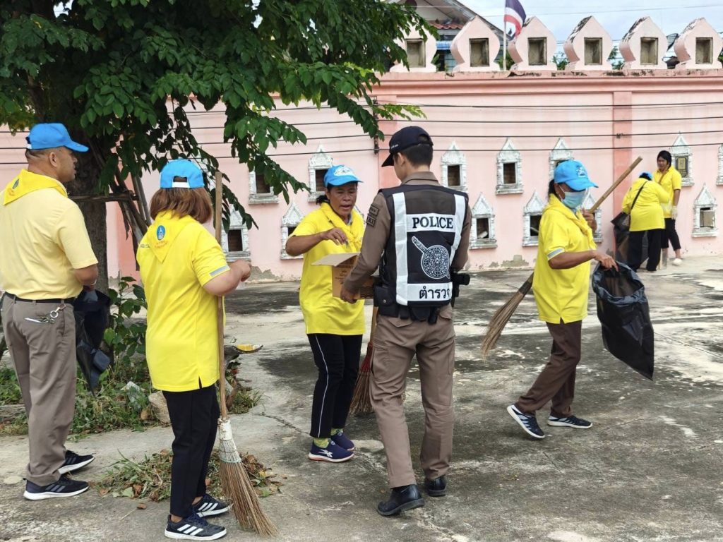 กิจกรรมโครงการจิตอาสา เราทำความดีด้วยหัวใจ “อำนวยความสะดวก และความปลอดภัยในการบำเพ็ญสาธารณประโยชน์” (9 ก.ย.67) 9 กันยายน 2024 โดย admin.nk / โครงการจิตอาสา วันนี้ 9 ก.ย. 2567 เวลา 09.00 น. พ.ต.อ.ชาติภัทร พิเนตรบูรณะ ผกก. สภ.เนินขาม,พ.ต.ท.มนต์ชัย ปุยฤทธิ์ รอง ผกก.ป. สภ.เนินขาม พร้อมด้วยข้าราชการตำรวจในสังกัด จัดกิจกรรมโครงการจิตอาสา เราทำความดีด้วยหัวใจ “อำนวยความสะดวก และความปลอดภัยในการบำเพ็ญสาธารณประโยชน์” โดยมีนายอำนาจ อินทฤทธิ์ ผอ.รพ.สต.เนินขาม, นางเจนจิรา ชมกุล ผอ.ร.ร.เนินขามรัฐประชานุเคราะห์, เทศบาลตำบลเนินขาม, อสม.ตำบลเนินขาม, อาสาตำรวจ, นักเรียนโรงเรียนเนินขามรัฐประชานุเคราะห์ ร่วมกิจกรรมทำความสะอาดปรับปรุงภูมิทัศน์ ณ วัดเนินขาม ต.เนินขาม อ.เนินขาม จ.ชัยนาท