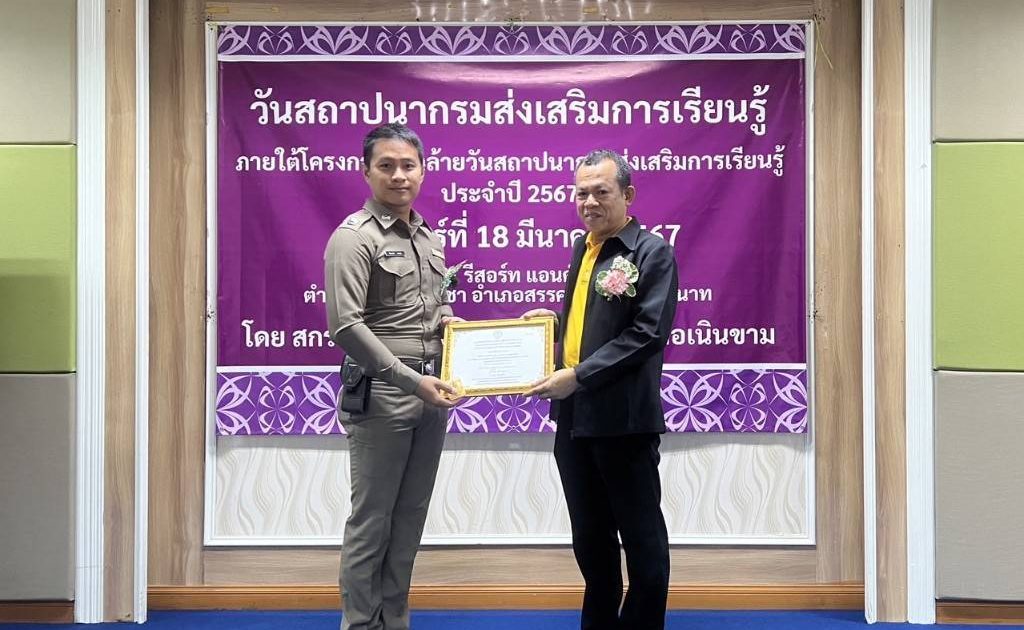 เจ้าหน้าที่ตำรวจ ชุดชุมชนมวลชนสัมพันธ์และการมีส่วนร่วมของประชาชน เข้าร่วมกิจกรรม วันคล้ายวันสถาปนากรมส่งเสริมการเรียนรู้ ประจำปี2567 ณ รีสอร์ท 111 อำเภอสรรคบุรี รับใบประกาศเกียรติคุณ เป็นภาคีเครือข่าย ให้ความรู้แก่ นักเรียน กรมส่งเสริมการเรียนรู้ (สกร.)อำเภอเนินขาม (กศน.เก่า)