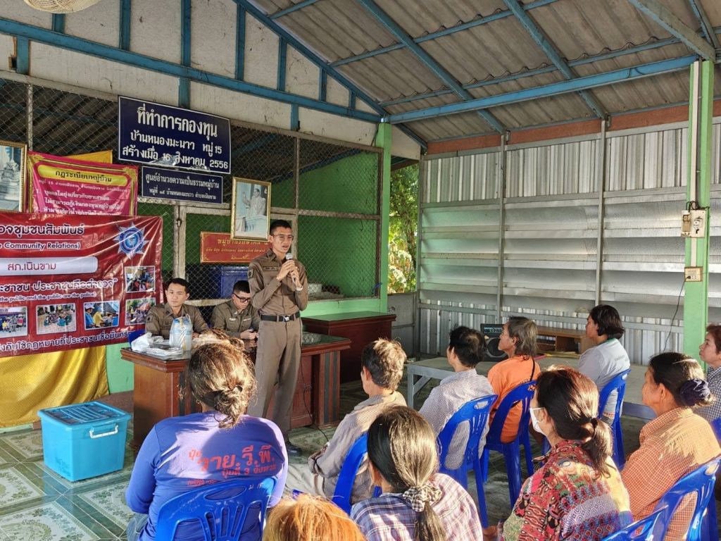 ชุดชุมชนสัมพันธ์ สภ.เนินขาม ลงพื้นที่ค้นหาแกนนำหมู่บ้านเป้าหมายได้พบผู้นำชุมชน พี่น้องประชาชนคณะกรรมการหมู่บ้านและได้มีโอกาสสร้างความคุ้นเคยจุดประกายความคิดในเรื่องการแก้ไขปัญหาในชุมชน (25 ธ.ค. 67) 25 ธันวาคม 2024 โดย admin.nk / ข่าวฝากประชาสัมพันธ์ วันนี้ 25 ธันวาคม 2567 เวลา 16.30 น. ชุดชุมชนสัมพันธ์ ลงพื้นที่ค้นหาแกนนำหมู่บ้านเป้าหมายได้พบผู้นำชุมชน พี่น้องประชาชนคณะกรรมการหมู่บ้านและได้มีโอกาสสร้างความคุ้นเคยจุดประกายความคิดในเรื่องการแก้ไขปัญหาในชุมชน และได้ลงพื้นที่ตรวจเยี่ยมศึกษาพื้นฐานของชุมชนสนทนาวิเคราะห์ปัญหาเรื่องกลุ่มเด็กวัยรุ่นแข่งรถในทาง,ปัญหายาเสพติดต่างๆ เพื่อที่ชุดปฏิบัติการและผู้นำชุมชนพี่น้องประชาชนจะได้กำหนดโครงการและนำกิจกรรมไปสู่การปฏิบัติในหมู่บ้านต่อไป พร้อมทั้งได้แจกแผ่นประชาสัมพันธ์การป้องกันอาชญากรรมและเบอร์แจ้งเหตุฉุกเฉินต่างๆ ณ หมู่บ้านหนองมะนาวหมู่ที่ 15 ตำบลเนินขาม อำเภอเนินขาม จังหวัดชัยนาท