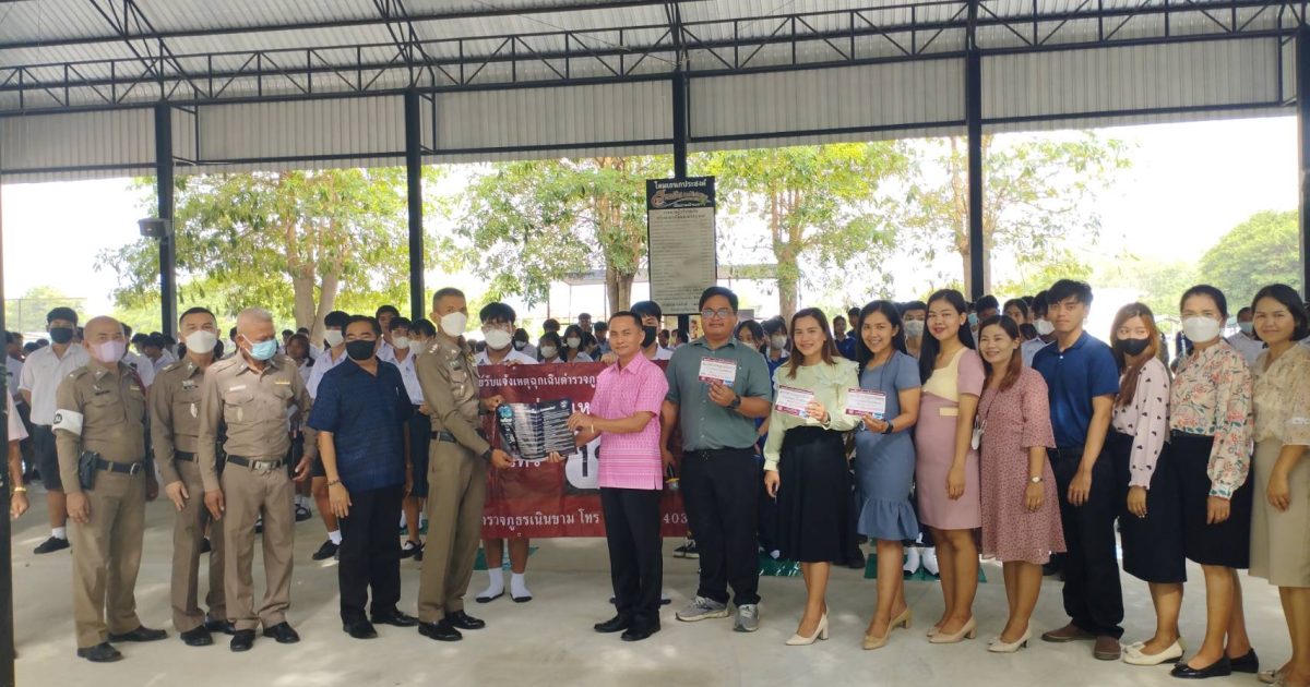 วันนี้ (23 พ.ค. 66) เวลา 08.00 น. พ.ต.อ.ชาติภัทร พิเนตรบูรณะ ผกก.สภ.เนินขาม,พ.ต.ต.ประสิทธิ์ ศิริธรรม สวป.สภ.เนินขาม,พ.ต.ต.จงรัก เบ้าคำ สว.สอบสวน สภ.เนินขาม พร้อมชุดมวลชนสัมพันธ์ ประชาสัมพันธ์ข้อกฎหมาย กฎหมายจราจร อาชญากรรมออนไลน์ การแจ้งเหตุ 191 ณ โรงเรียนเนินขามรัฐประชานุเคราะห์