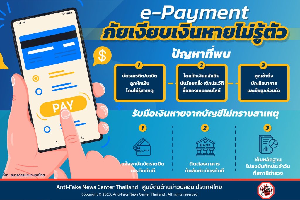 #ศูนย์ต่อต้านข่าวปลอม#AntiFakeNewsCenter#AFNCThailand#ภัยเงียบ#ePayment#เงินหาย