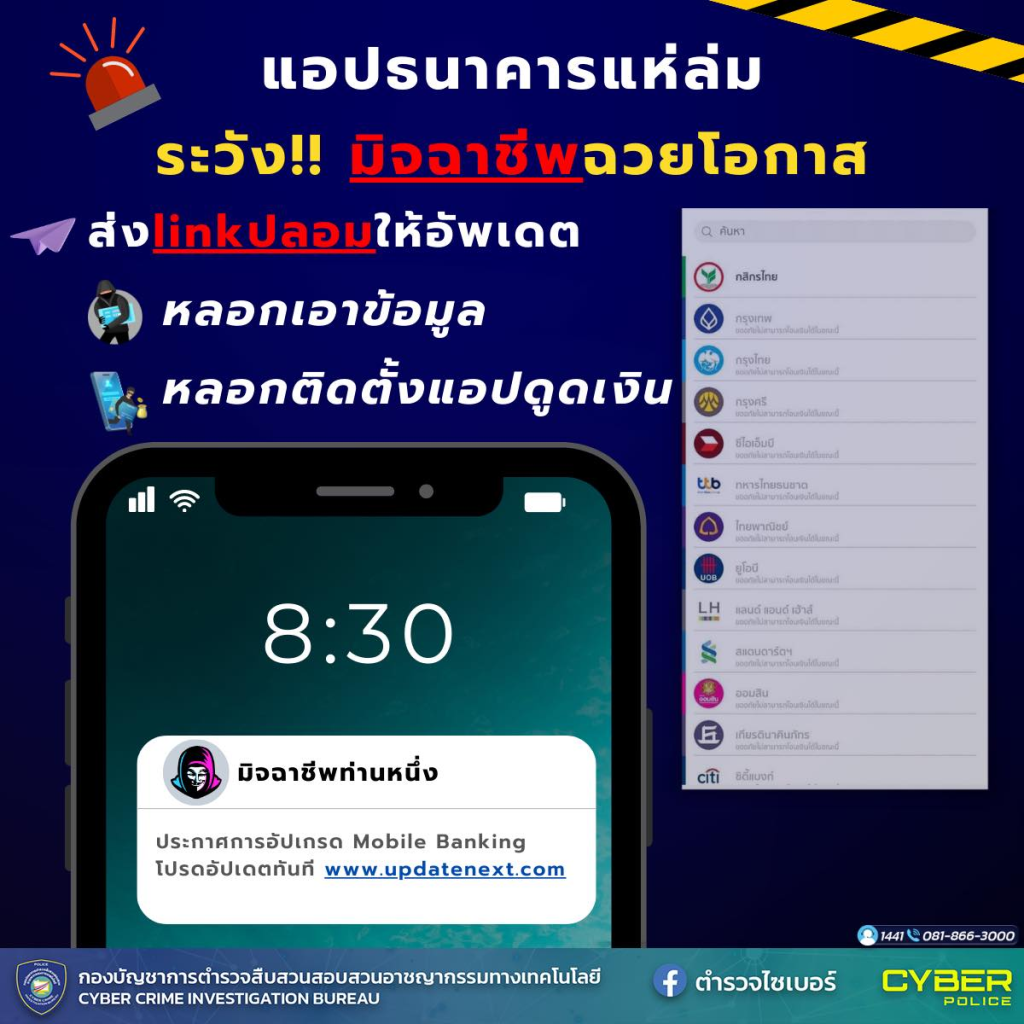 #ตำรวจไซเบอร์#เตือนภัยออนไลน์#แอปธนาคารล่ม#หลอกกดลิงก์