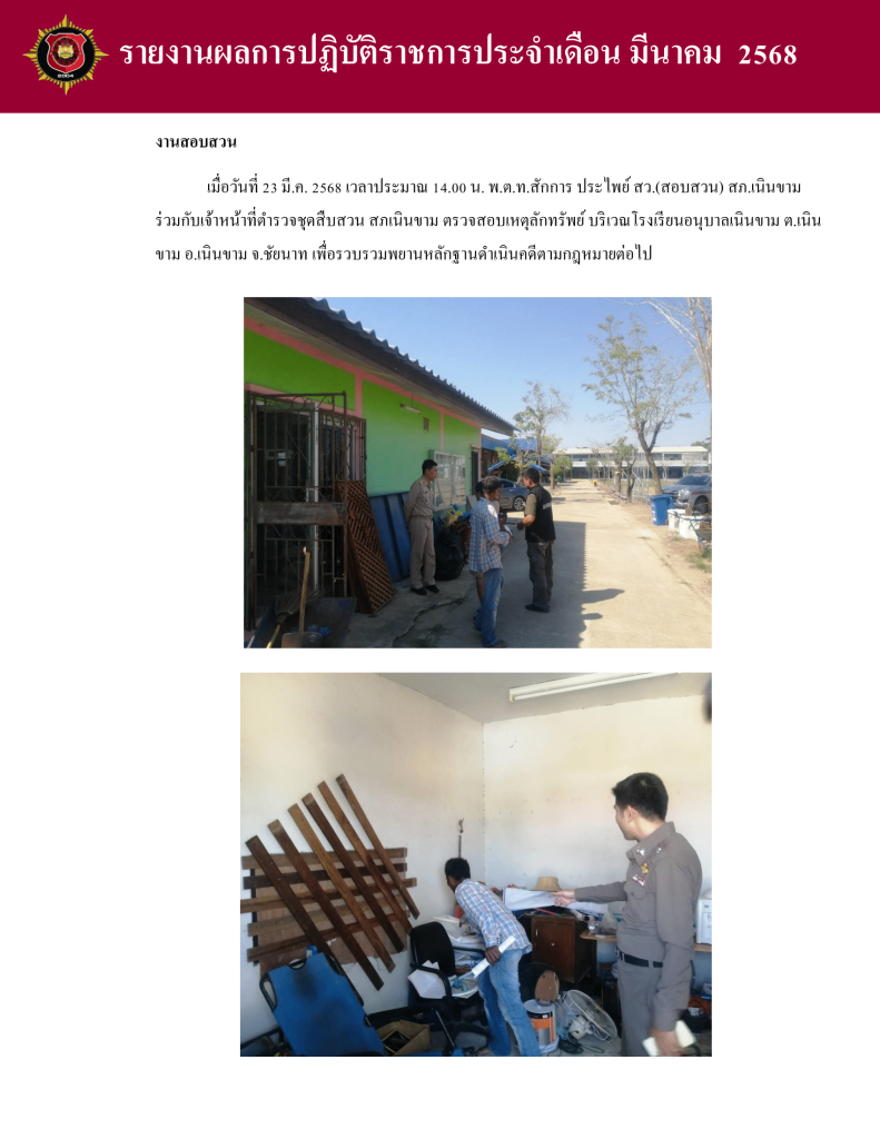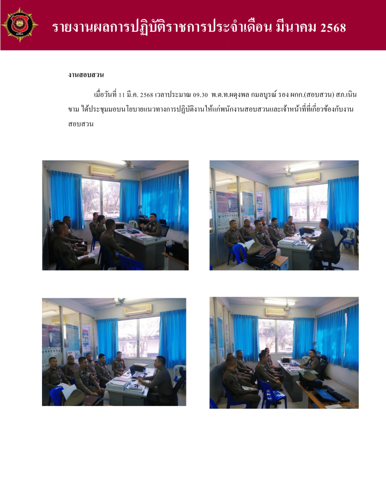 ผลการปฏิบัติงาน สายงานสอบสวน เดือน มีนาคม 2568 1 เมษายน 2025 โดย admin.nk / ผลการปฏิบัติงาน สายงานสอบสวน