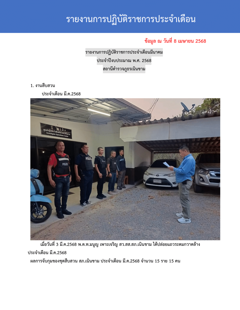 ผลการปฏิบัติงาน สายงานสืบสวน เดือน มีนาคม 2568 8 เมษายน 2025 โดย admin.nk / ผลการปฏิบัติงาน สายงานสืบสวน