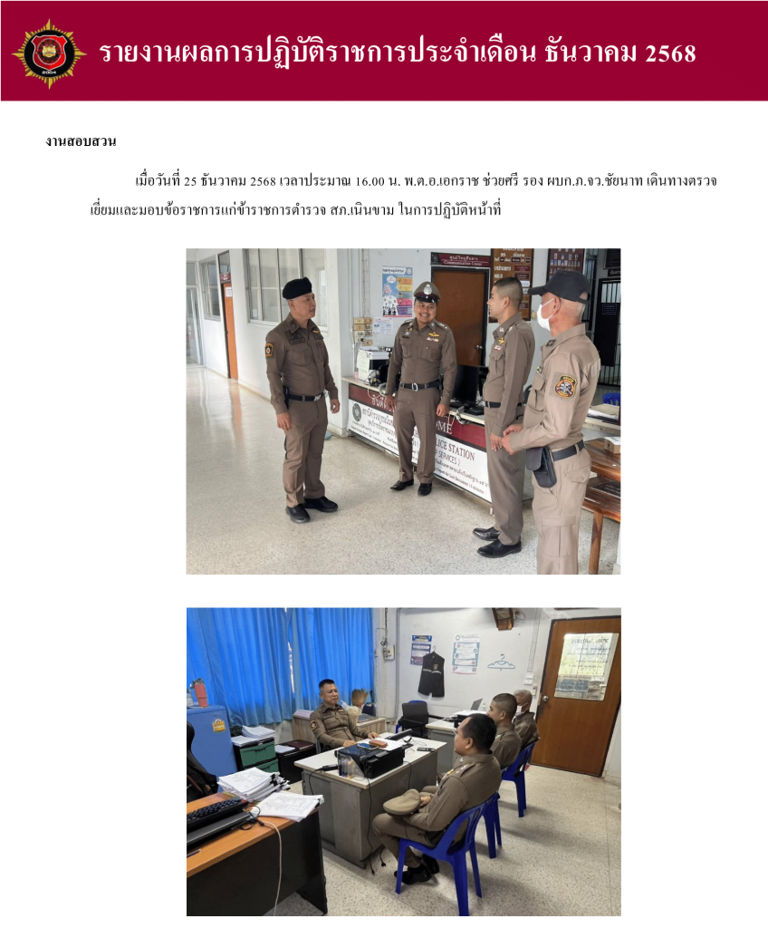 ผลการปฏิบัติงาน สายงานสอบสวน เดือน ธันวาคม 2568 31 ธันวาคม 2025 โดย admin.nk / ผลการปฏิบัติงาน สายงานสอบสวน