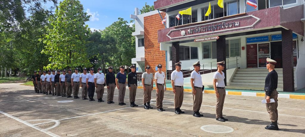,เนินขาม4-1ได้เรียกแถวข้าราชการตำรวจ สภ.เนินขาม มาทำการฝึกเพื่อเข้ารับการตรวจการฝึกประกวดของข้าราชตำรวจ ประจำปี 2567