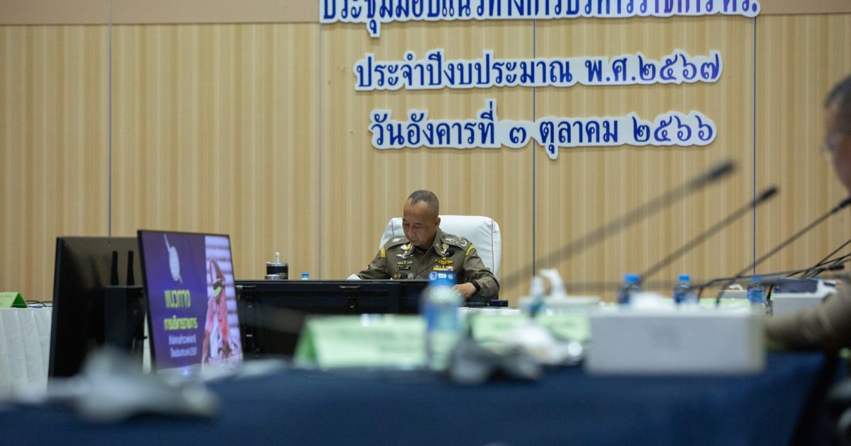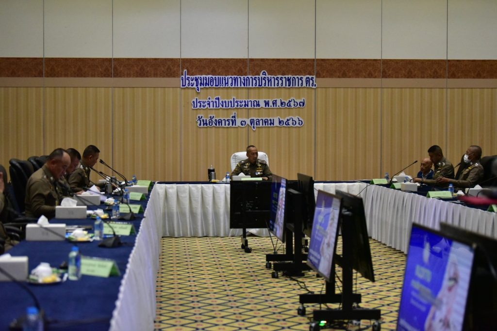 เมื่อวันที่ 3 ตุลาคม 2566 เวลา 13.30 น. พล.ต.อ.ต่อศักดิ์ สุขวิมล ผู้บัญชาการตำรวจแห่งชาติ ( ผบ.ตร. ) พร้อมด้วย พล.ต.อ.รอย อิงคไพโรจน์ รอง ผบ.ตร., พล.ต.อ.สุรเชษฐ์ หักพาล รอง ผบ.ตร., พล.ต.อ.กิตติ์รัฐ พันธุ์เพ็ชร์ รอง ผบ.ตร., พล.ต.ท.ธนา ชูวงศ์ รรท.รอง ผบ.ตร., พล.ต.ท.สราวุฒิ การพานิช รรท.รอง ผบ.ตร., พล.ต.ท.ไกรบุญ ทรวดทรง รรท.จตช. พร้อมด้วยข้าราชการตำรวจทุกหน่วย ระดับกองบังคับการ และสถานีตำรวจทุกระดับ เข้าร่วมประชุมรับฟังวิสัยทัศน์ และมอบแนวทางการบริหารราชการสำนักงานตำรวจแห่งชาติ ณ ห้องศรียานนท์ ชั้น 2 อาคาร 1 ตร. และการประชุมทางไกลผ่านจอภาพ พร้อมเพรียงกันทุกหน่วย