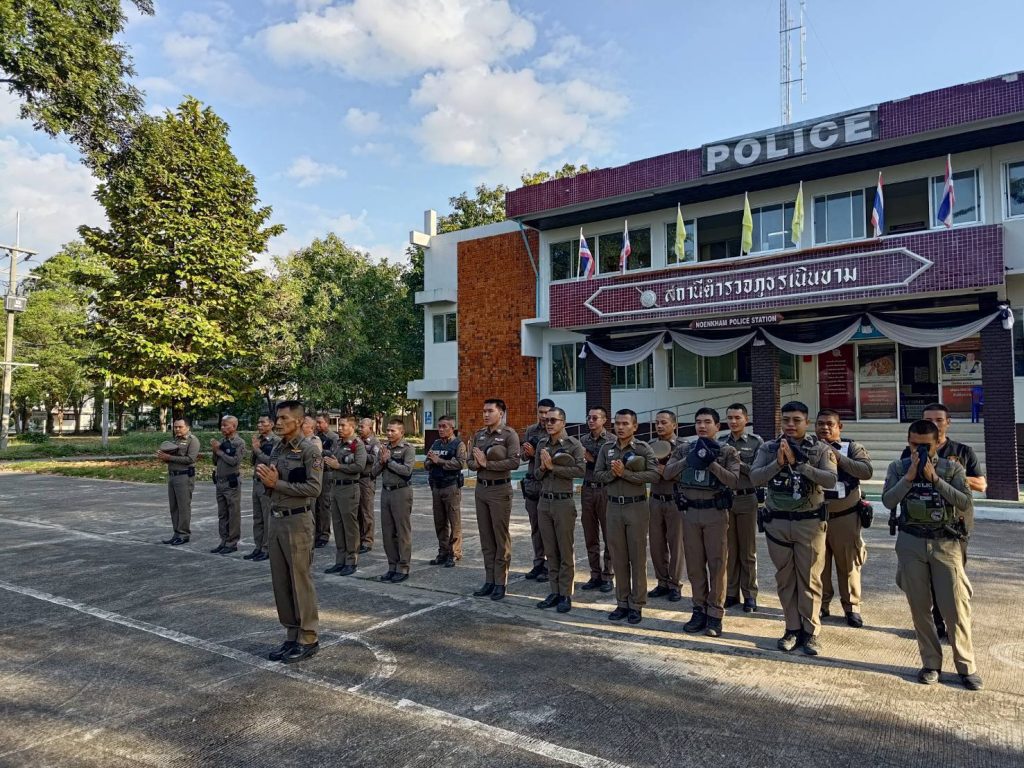 พ.ต.อ.ชาติภัทร พิเนตรบูรณะผกก.สภ.เนินขาม,พ.ต.ท.วีระ สุขชนะ รอง ผกก.ป.สภ.เนินขาม และ พ.ต.ท.ประสิทธิ์ ศิริธรรม สวป.สภ.เนินขาม อบรมปล่อยแถว (23 ธ.ค.68) 23 ธันวาคม 2025 โดย admin.nk / กิจกรรมต่อต้านการทุจริตและการรับสินบน,ข่าวภารกิจผู้บังคับบัญชา วันนี้ 23 ธ.ค. 2568 เวลา 08.00 น. พ.ต.อ.ชาติภัทร พิเนตรบูรณะผกก.สภ.เนินขาม,พ.ต.ท.วีระ สุขชนะ รอง ผกก.ป.สภ.เนินขาม และ พ.ต.ท.ประสิทธิ์ ศิริธรรม สวป.สภ.เนินขาม อบรมปล่อยแถวสายตรวจรถยนต์ ผลัดเก่า-ใหม่ ,เจ้าหน้าที่ธุรการ,บริเวณหน้าเสาธง เคารพธงชาติ,สวดมนต์ฯ,กล่าวอุดมคติตำรวจ ตรวจเครื่องแต่งกาย อุปกรณ์ประจำกาย พร้อมชี้แจงข้อสั่งการของผู้บังคับบัญชา และเน้นย้ำการต่อต้านการทุจริตเเละการรับสินบนจากการปฏิบัติหน้าที่ (Anti-Bribery Policy)