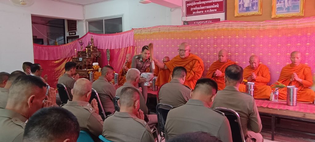 พ.ต.อ.ชาติภัทร พิเนตรบูรณะ ผกก.สภ.เนินขาม พร้อมข้าราชการตำรวจ สภ.เนินขาม สักการะสิ่งศักดิ์สิทธิ์ประจำสถานี เสร็จแล้วอ่านสาร ผบ.ตร.เนื่องในวันตำรวจ ประจำปี 2567 (17 ต.ค. 67) 17 ตุลาคม 2024 โดย admin.nk / กิจกรรม กต.ตร.สภ.เนินขาม,ข่าวภารกิจผู้บังคับบัญชา วันนี้ 17 ตุลาคม 2567เวลา 09.00 น.พ.ต.อ.ชาติภัทร พิเนตรบูรณะ ผกก.สภ.เนินขาม พร้อมข้าราชการตำรวจ สภ.เนินขาม และ กต.ตร.สภ.เนินขาม สักการะสิ่งศักดิ์สิทธิ์ประจำสถานี เสร็จแล้วอ่านสาร ผบ.ตร.เนื่องในวันตำรวจ ประจำปี 2567 และร่วมทำบุญ ณ สภ.เนินขาม เนื่องในวันตำรวจ ประจำปี 2567 เพื่อเป็นสิริมงคลให้กับครอบครัวตำรวจ สภ.เนินขาม