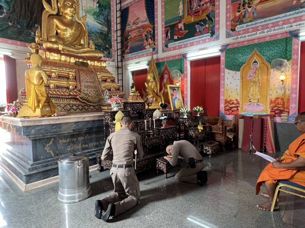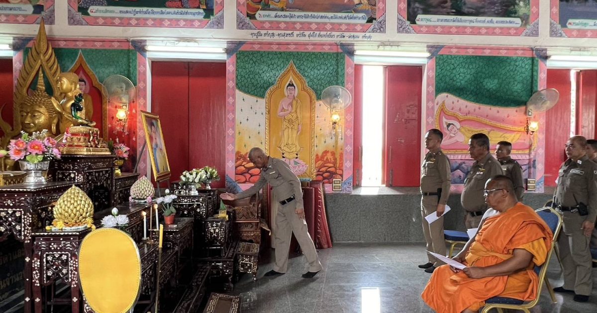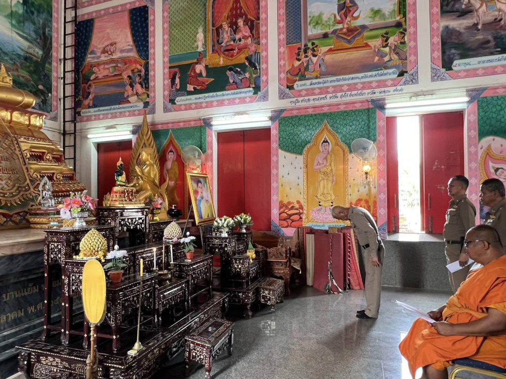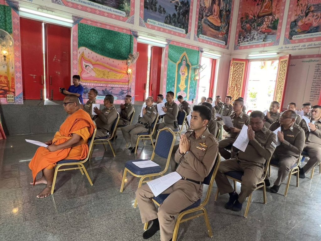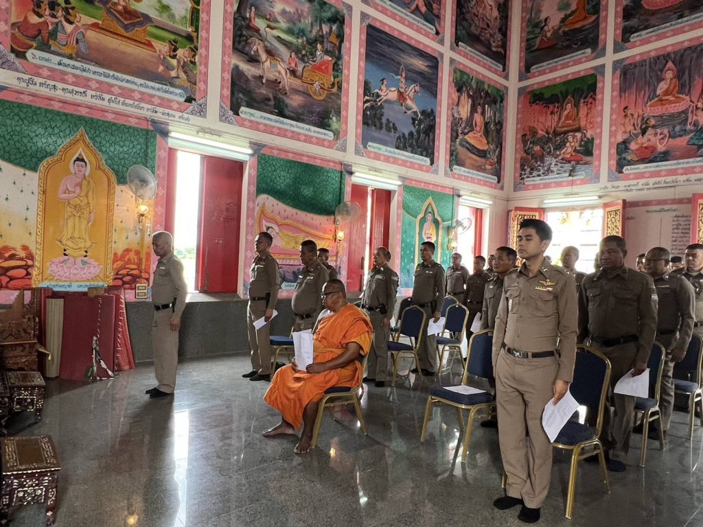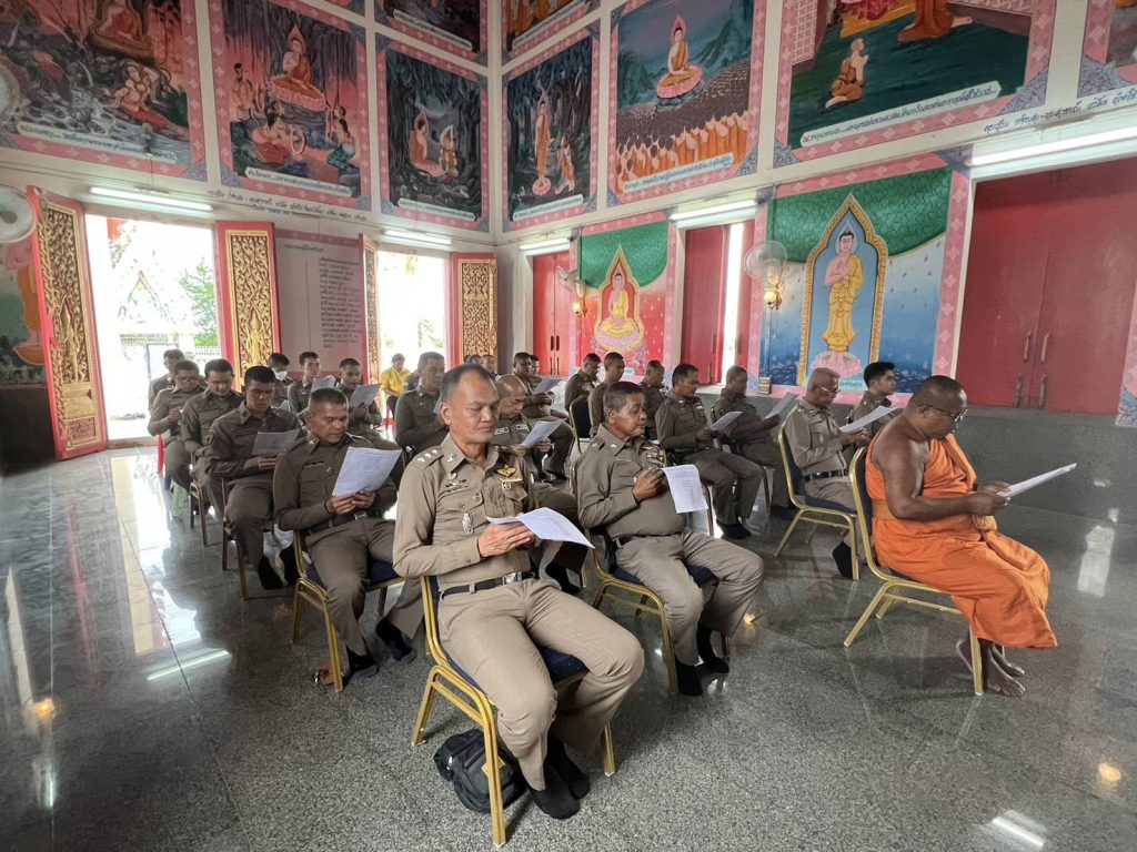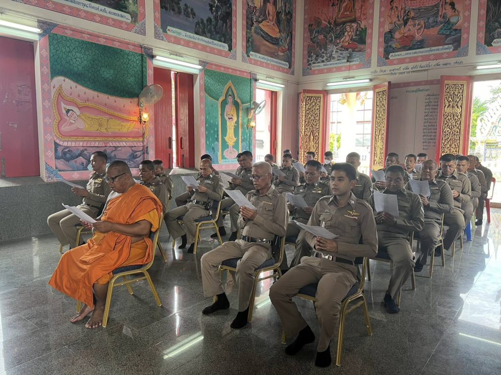 พ.ต.อ.ชาติภัทร พิเนตรบูรณะ ผกก.สภ.เนินขาม มอบหมายให้ พ.ต.ต.ประสิทธิ์ ศิริธรรม สวป.สภ.เนินขาม พร้อมข้าราชการตำรวจเข้าร่วมพิธีเจริญพระพุทธมนต์ และเจริญจิตภาวนาเพื่อถวายพระพรชัยมงคลแด่สมเด็จพระเจ้าลูกเธอเจ้าฟ้าพัชรกิติยาภา นเรนทิราเทพยวดี กรมหลวงราชสาริณีสิริพัชร มหาวัชรราชธิดา (4 พ.ย. 67)