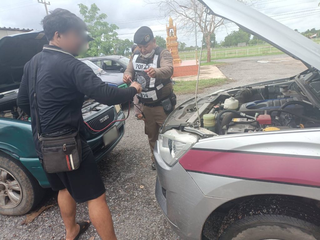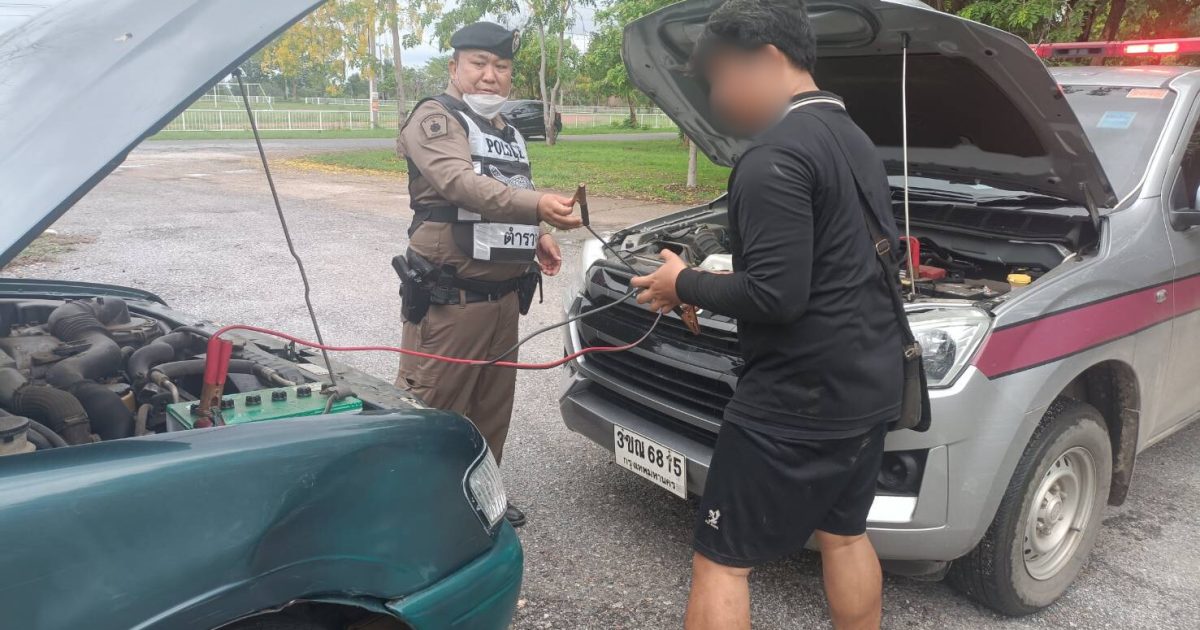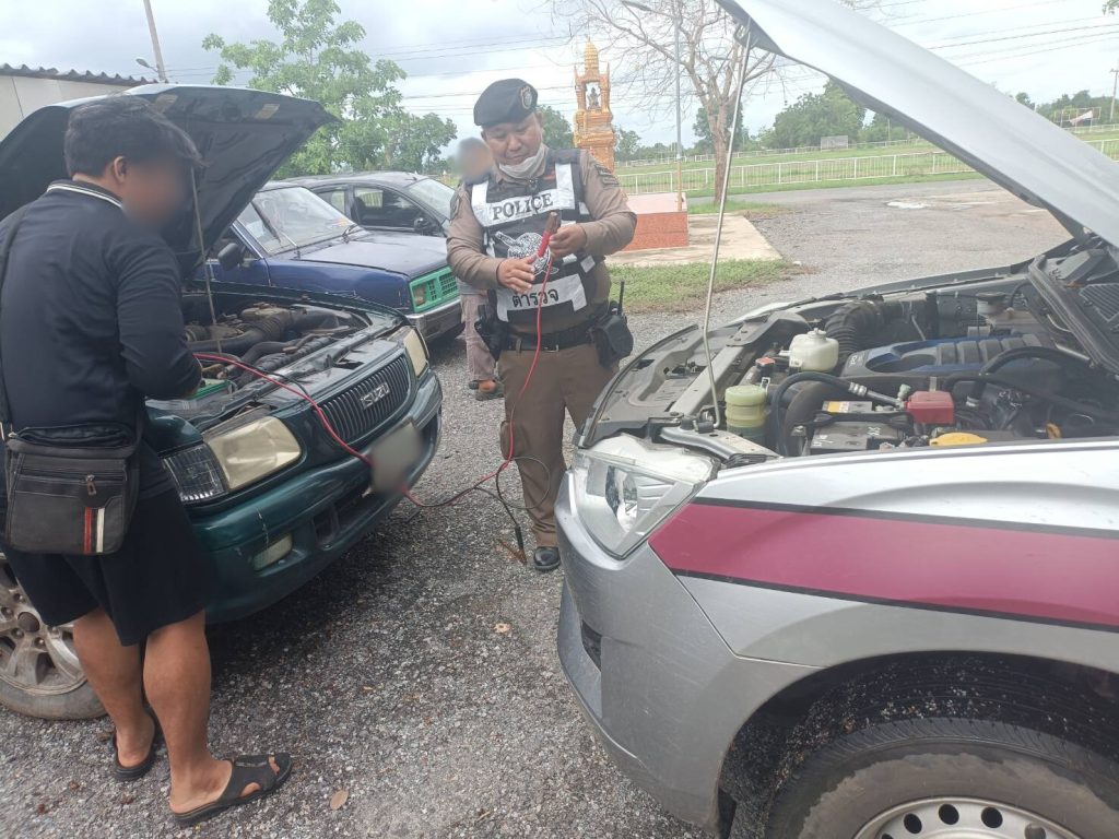 สายตรวจรถยนต์ สภ.เนินขามฯ ช่วยเหลือประชาชน (23 พ.ค.67) 23 พฤษภาคม 2024 โดย admin.nk / ข่าวฝากประชาสัมพันธ์ วันนี้ ( 23 พ.ค.67) เวลาประมาณ 11.10 น. เนินขาม 20 พร้อม สายตรวจรถยนต์ได้ออกตรวจพื้นที่ตามวงรอบที่ผู้บังคับบัญชากำหนด เมื่อออกตรวจมาถึง สภ.เนินขาม ได้ช่วยเหลือประชาชน ที่บริเวณลานจอดรถของกลาง สภ.เนินขาม สอบถามว่าได้ความว่าจะมานำรถยนต์กระบะของกลางที่เกิดอุบัติเหตุและคดีสิ้นสุดแล้วนำไปใช้งาน แต่ปรากฎว่ารถสต๊าทไม่ติดเนื่องจากแบ็ตเตอรี่ไม่ได้ใช้งานมานานเป็นเดือน เนินขาม 20 และสายตรวจรถยนต์ จึงได้ช่วยเหลือโดยใช้สายพ่วงแบ็ตเตอรี่ ทำให้รถสามารถใช้งานและเดินทางกลับบ้านได้ต่อไป