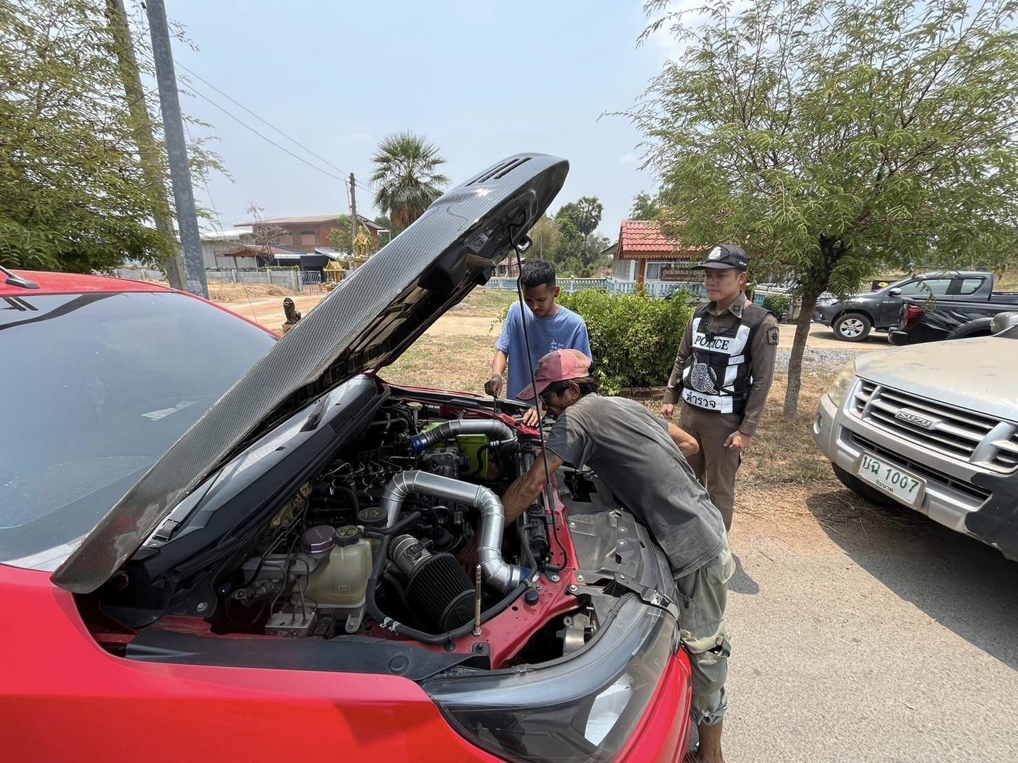 เนินขาม 20 พร้อมสายตรวจรถยนต์ ว.4 ประชาชนขอความช่วยเหลือ สอบถามพบว่าสายพานหลุด เนินขาม 20 จึงได้ติดต