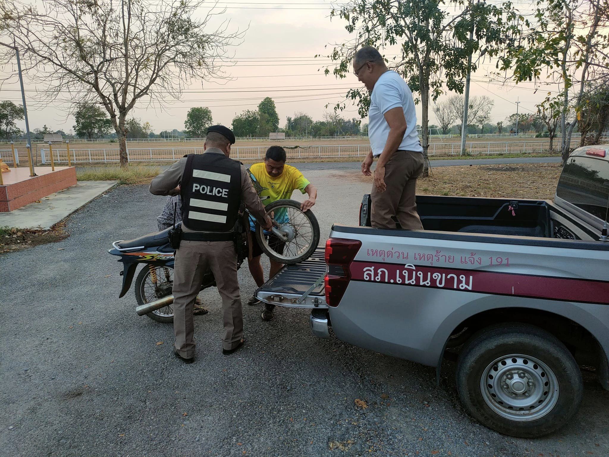 เนินขาม 20 ว. 4 ช่วยเหลือประชาชนมาติดต่อราชการที่ สภ.เนินขาม ขากลับรถจยย.สตาร์ทไม่ติด เนินขาม 20 จึง