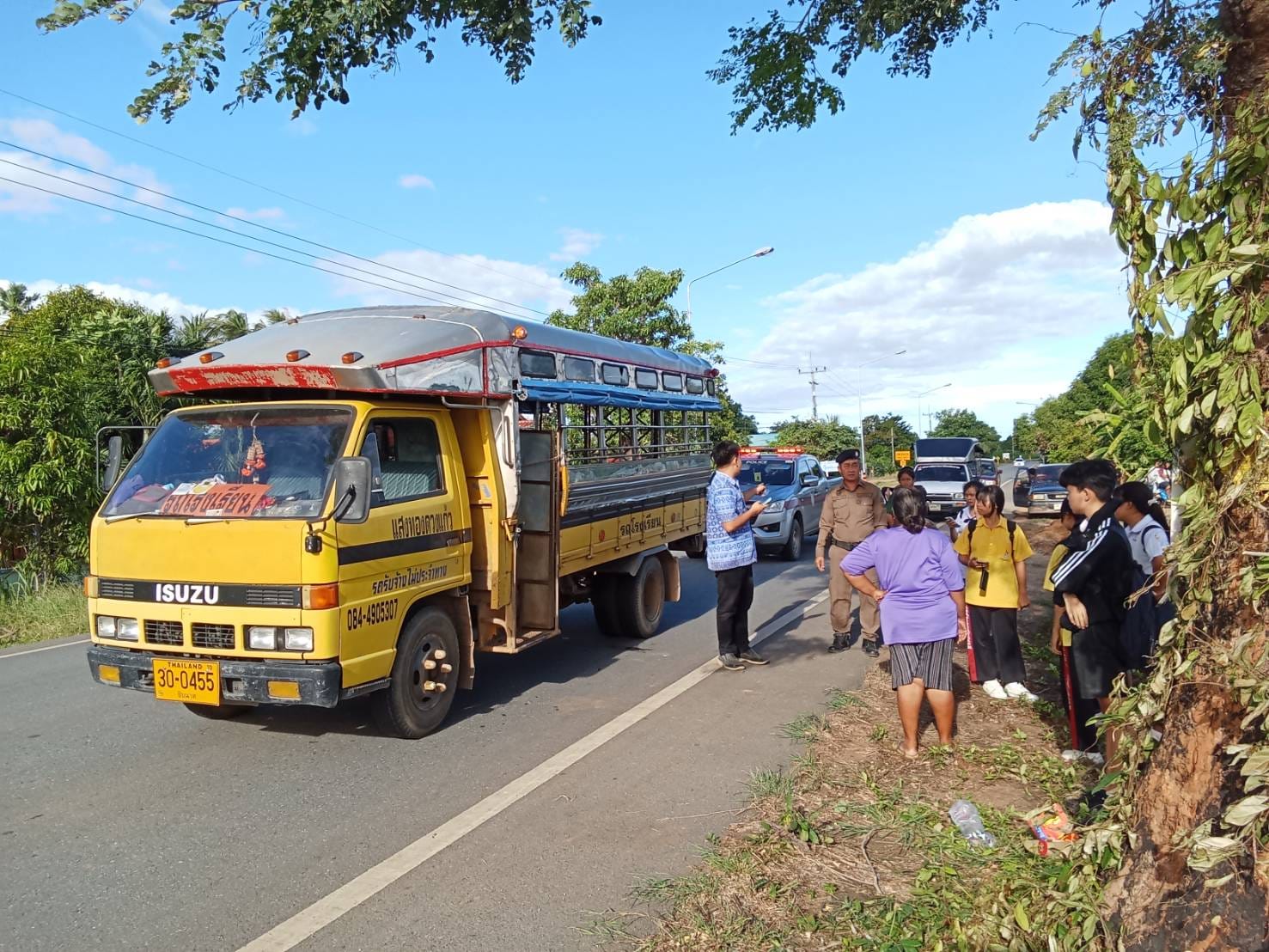เนินขาม 20 สายตรวจรถยนต์ ว.4 อำนวยความสะดวกความปลอดภัยด้านการจราจร เนื่องจากรถรับส่งนักเรียนเครื่องย