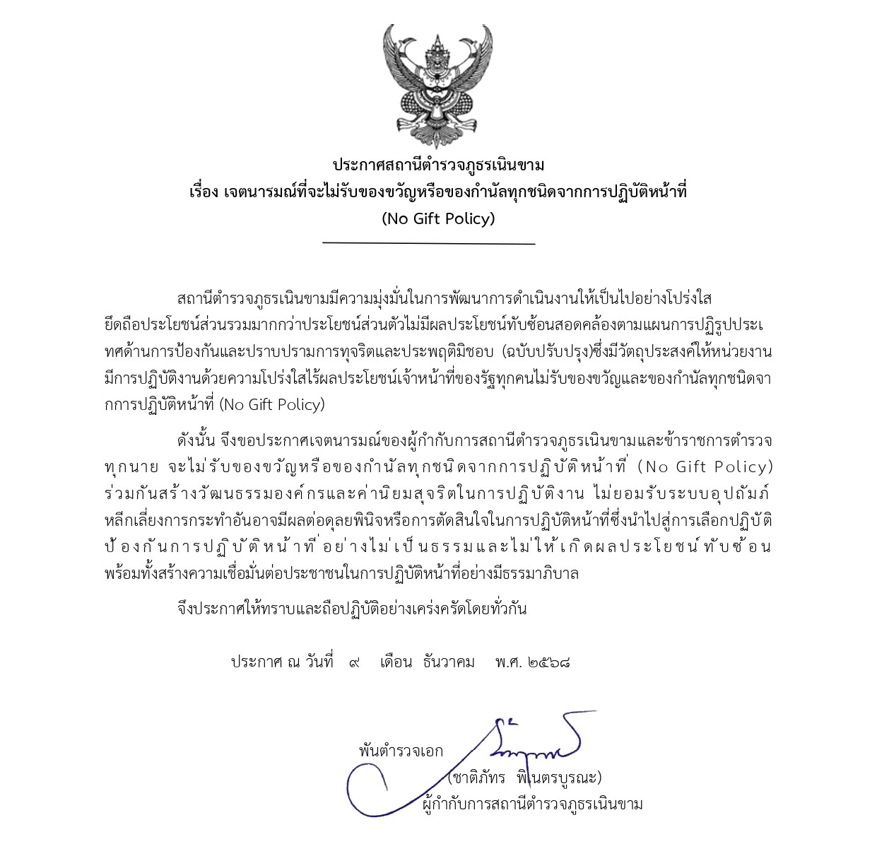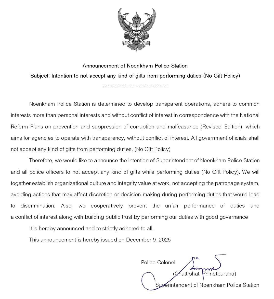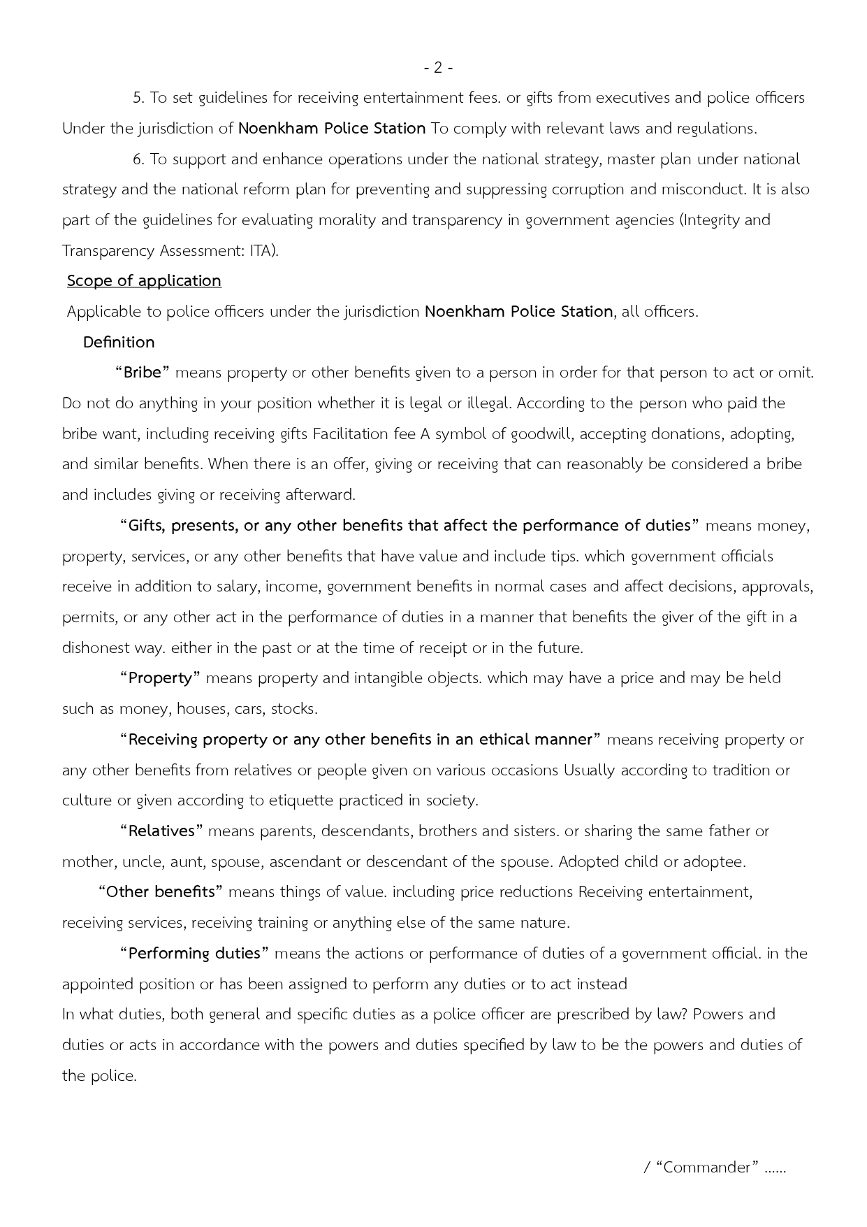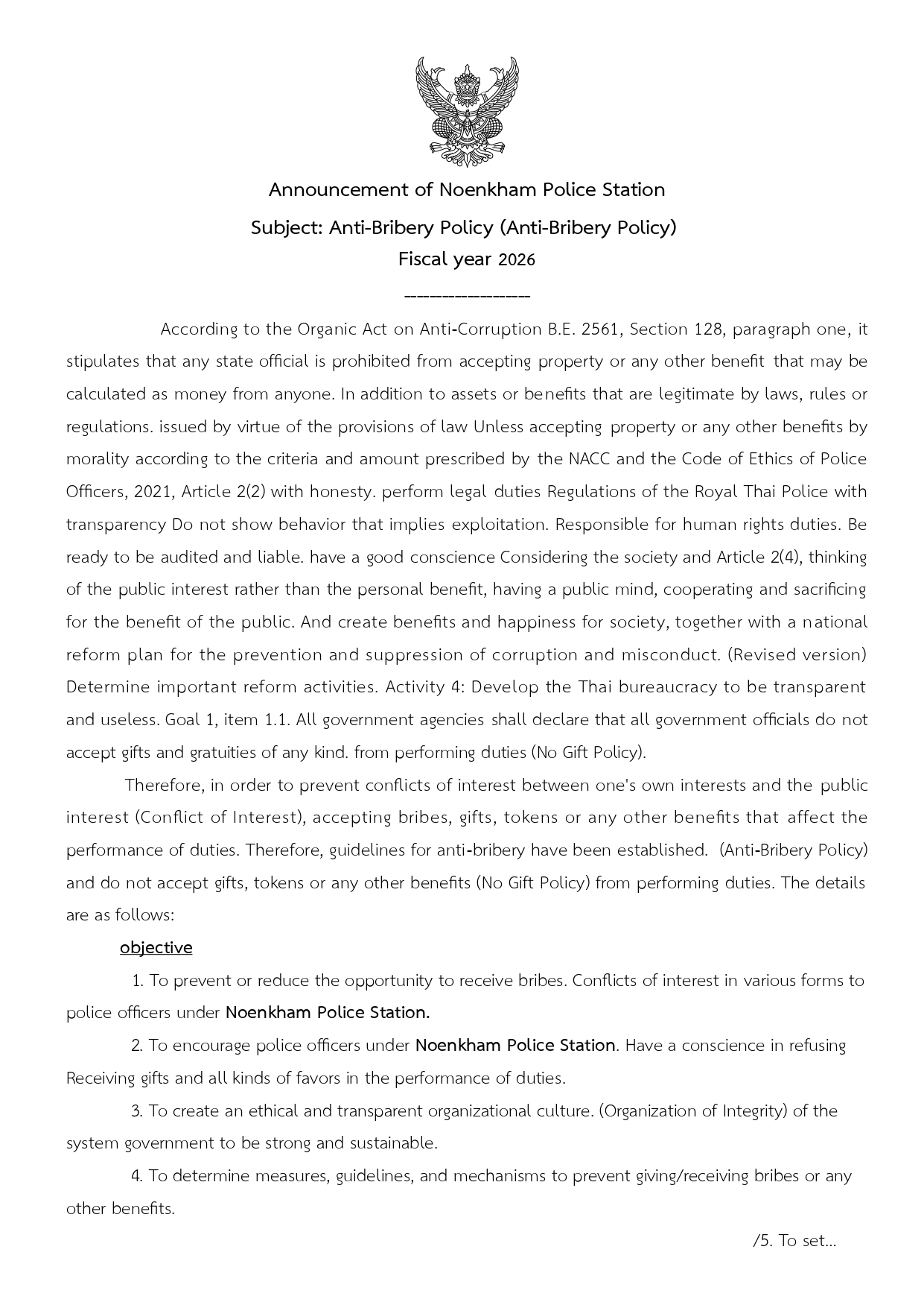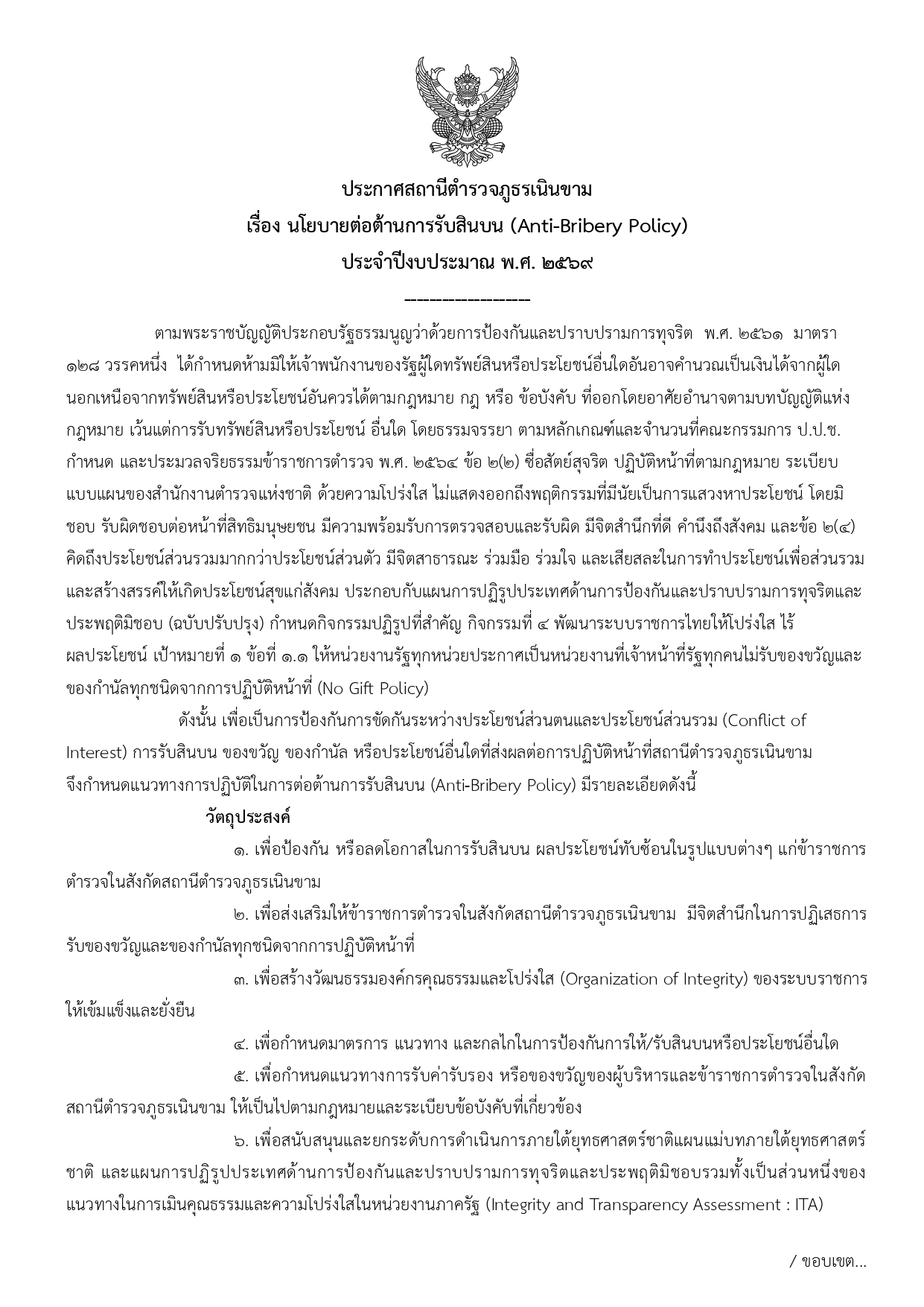 O18 – ประกาศนโยบายต่อต้านการรับสินบน (Anti – Bribery Policy)