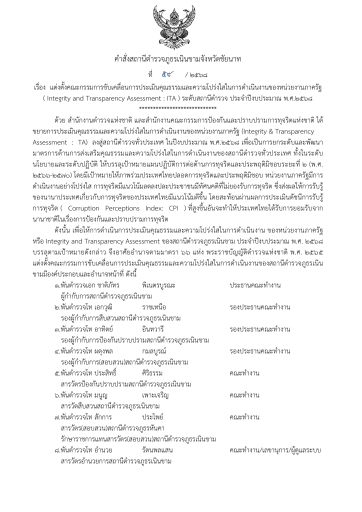 สภ.เนินขาม ฯ ประชุมบริหารประจำเดือนและขับเคลื่อนการประเมินคุณธรรมเเละความโปร่งใสในการดำเนินงานของหน่วยงานภาครัฐ (ITA) ประจำปีงบประมาณ พ.ศ.2568 เน้นย้ำการต่อต้านการทุจริตเเละการรับสินบน (Anti – Bribery Policy) ( 6 ก.พ.68 )