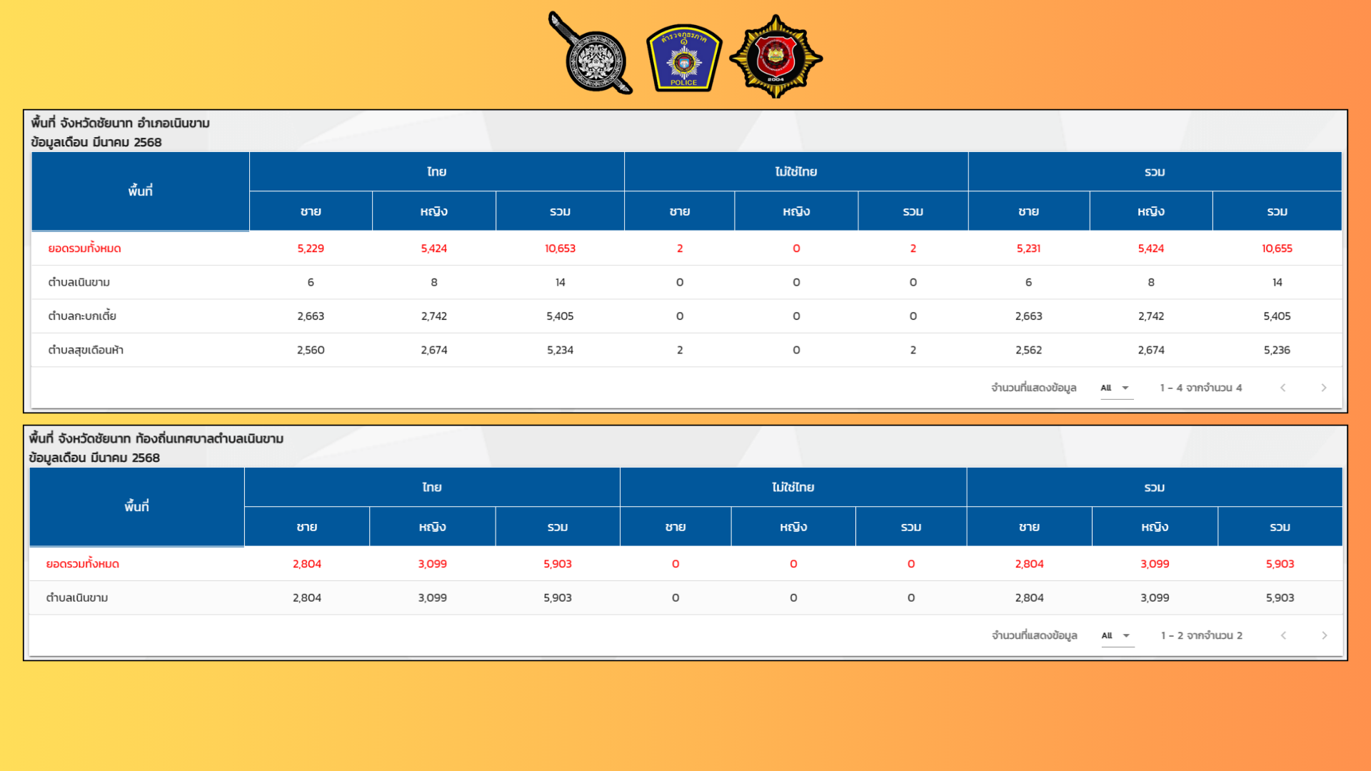 ไม่ใช่ไทย ชาย -- คน หญิง -- คน รวม -- คน