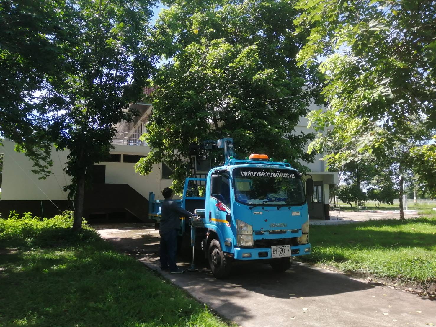 นายจรูญ จินดารัตน์ นายกเทศมนตรีตำบลเนินขาม (ประธาน กต.ตร.สภ.เนินขาม) สนับสนุนรถกระเช้าพร้อมกับเจ้าหน้าที่ เพื่อปรับภูมิทัศน์บริเวณพื้นที่รอบ สภ.เนินขาม (22 ส.ค. 67)
