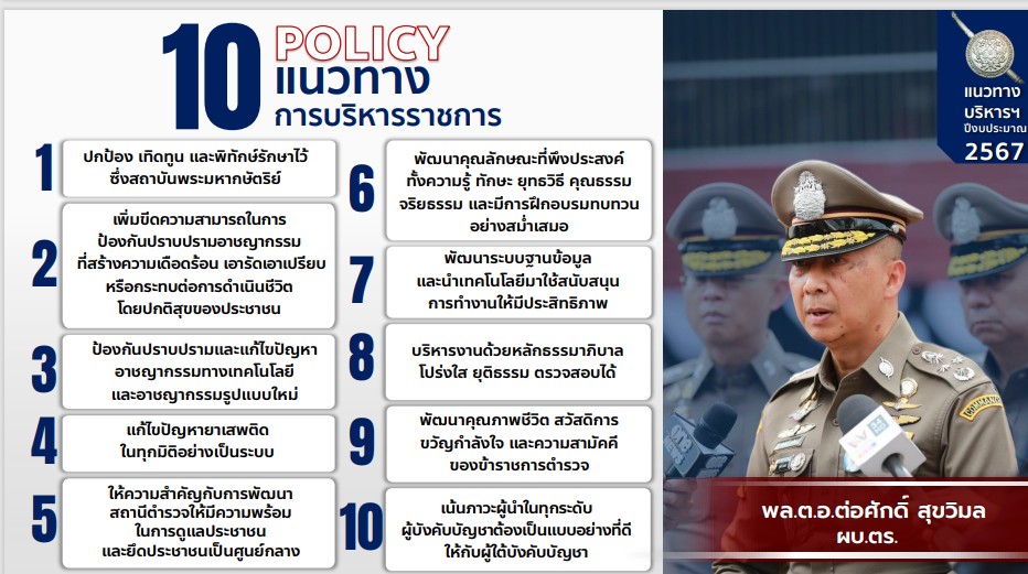 การปฏิบัติราชการตาม 10 นโยบายหลัก ของ พล.ต.อ.ต่อศักดิ์ สุขวิมล ผบ.ตร. 15 ธันวาคม 2023 โดย admin.nk / ไม่มีหมวดหมู่ รายงานผลการปฏิบัติราชการตามนโยบาย10 ข้อ ของ ผบ.ตร.ในรูปแบบไฟล์ WORD คลิ๊กที่นี่ รายงานผลการปฏิบัติราชการตามนโยบาย10 ข้อ ของ ผบ.ตร.ในรูปแบบไฟล์ PDF คลิ๊กที่นี่